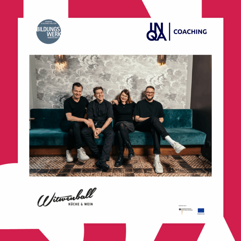 Das inhabergeführte Restaurant Witwenball steht für einen hohen Anspruch an Qualität und Service. Um neben dem laufenden Betrieb auch die digitale Transformation strukturiert anzugehen, entschieden sich Julia und Axel Bode für eine Teilnahme am Förderprogramm INQA-Coaching. „Uns war wichtig, dass unsere Mitarbeitenden den Prozess aktiv mitgestalten können. Nur so entsteht am Ende ein digitales System, das im Arbeitsalltag wirklich entlastet“, erklärt Bode. Das Konzept des Förderprogramms passte daher ideal zu den Anforderungen des Betriebs.